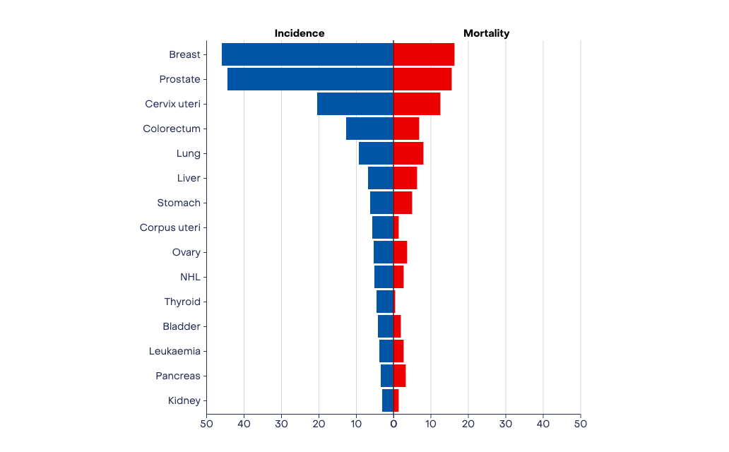 Predicts the future cancer incidence and mortality burden worldwide up until 2050.